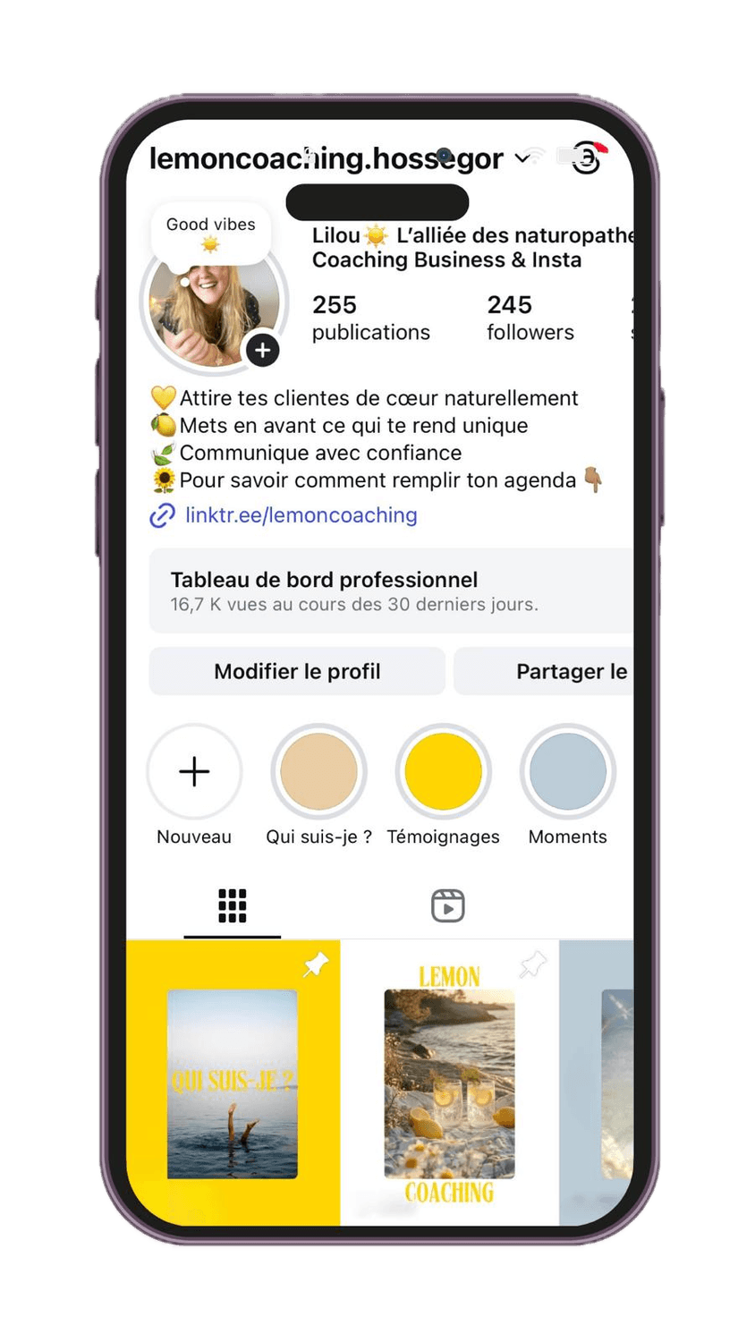 Je t’apprends à utiliser Instagram comme un outil de visibilité qui reflète ta personnalité et ton métier, pas comme une vitrine artificielle.